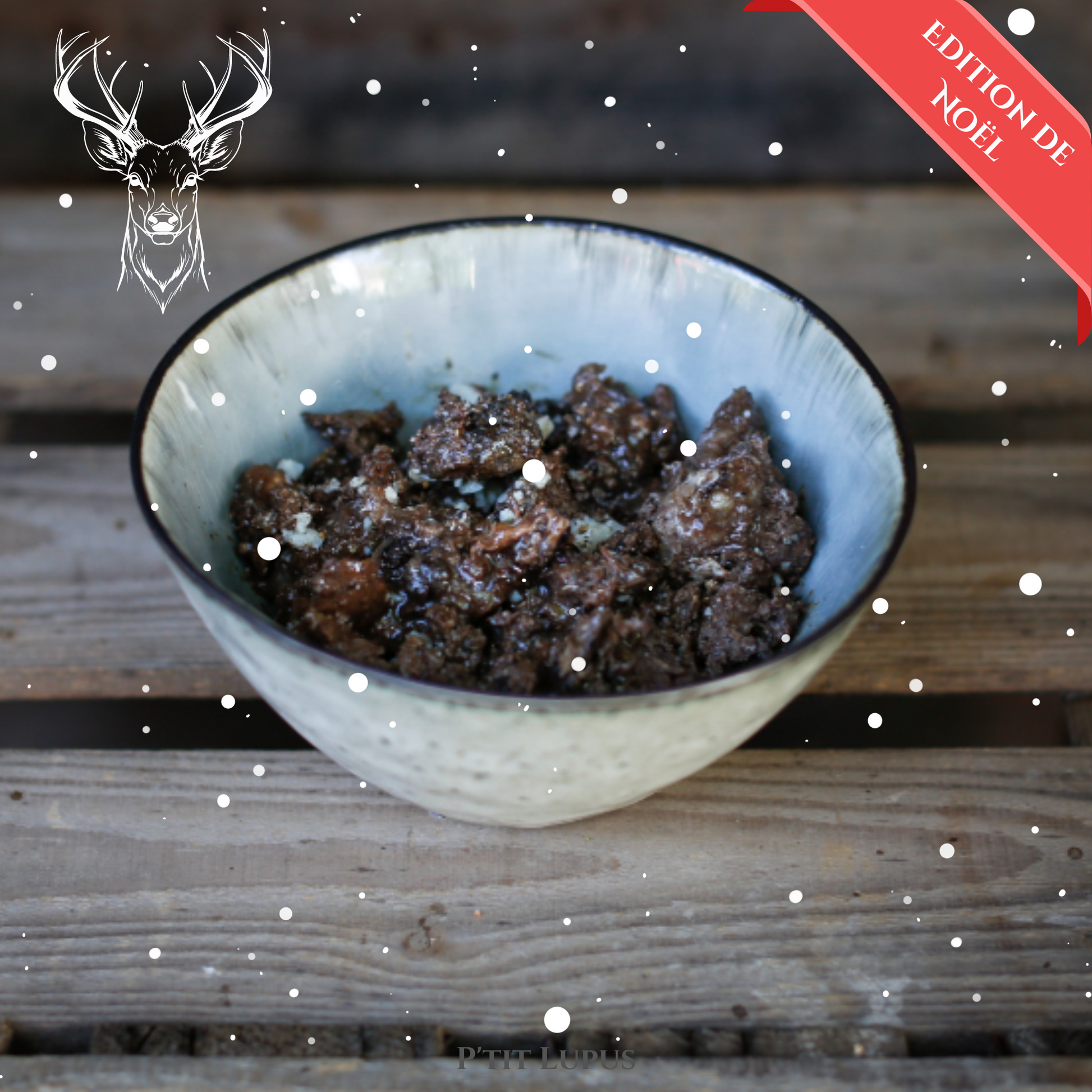 Avec des morceaux de chevreuil soigneusement sélectionnés, cette Pâtée de Noël régale les papilles de nos chiens. En plus d'être très gourmande, elle est aussi saine et bonne pour sa santé. En effet, l'Amaranthe, la Poire et la Groseilles ont tant de bienfaits a lui apporter !